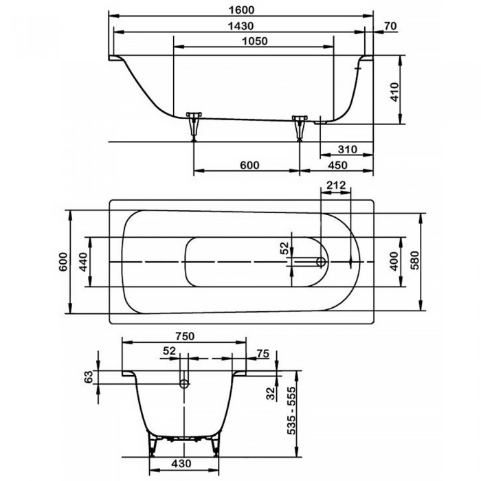 Ванна стальная 160x75 см Kaldewei Saniform Plus 112500010001 (Mod.372-1)