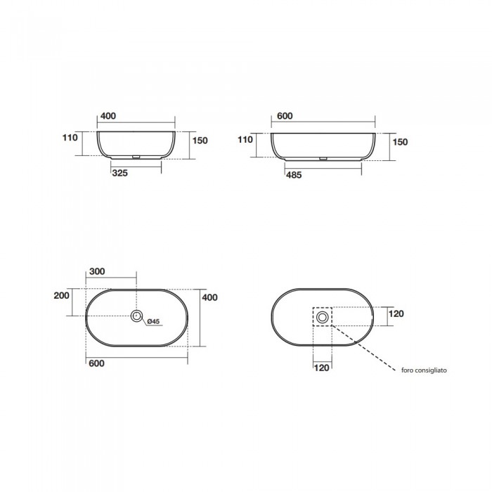 Раковина на столешницу 60х40 Kerasan Nolita 5343 30, белая матовая
