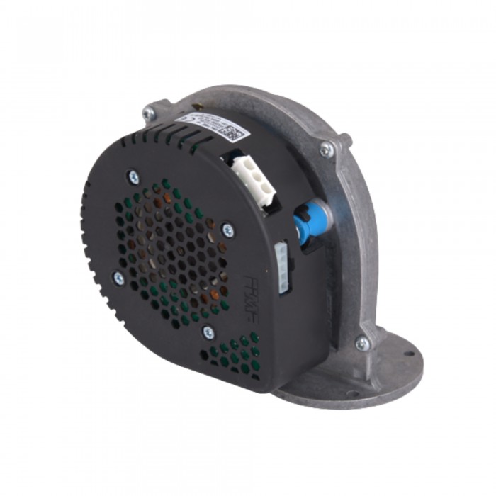 Вентилятор конденсационного котла обеспечивает подачу газовоздушной смеси в камеру сгорания. Имеет полную модуляцию рабочих оборотов.
