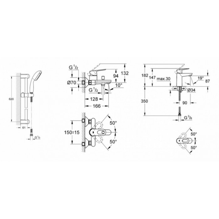 Набор смесителей для ванны Grohe BAULOOP 123214S (23337000+23603000+27598001)