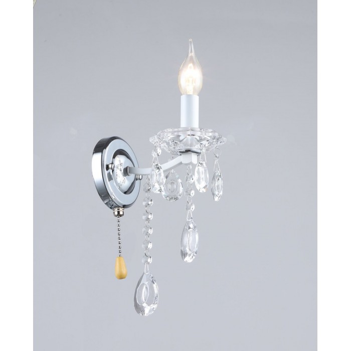 Стильне бра A4461/1W у білому та хромованому виконанні стане витонченим доповненням до інтер’єру. Один патрон типу E14 забезпечує м’яке та комфортне освітлення, яке ідеально підійде для спалень, коридорів або ванних кімнат. Поєднання сталі та кришталю додає виробу елегантності та довговічності.