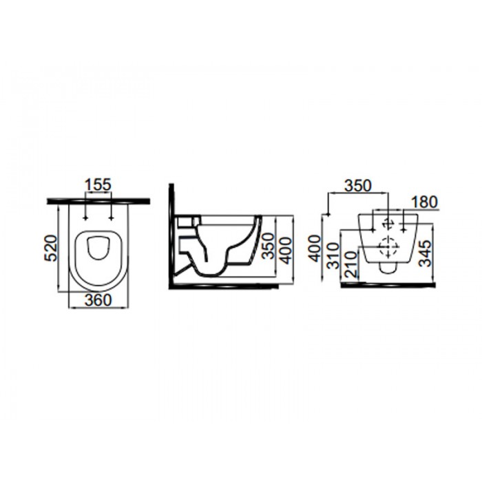 - - чаша унитаза с горизонтальным выпуском;