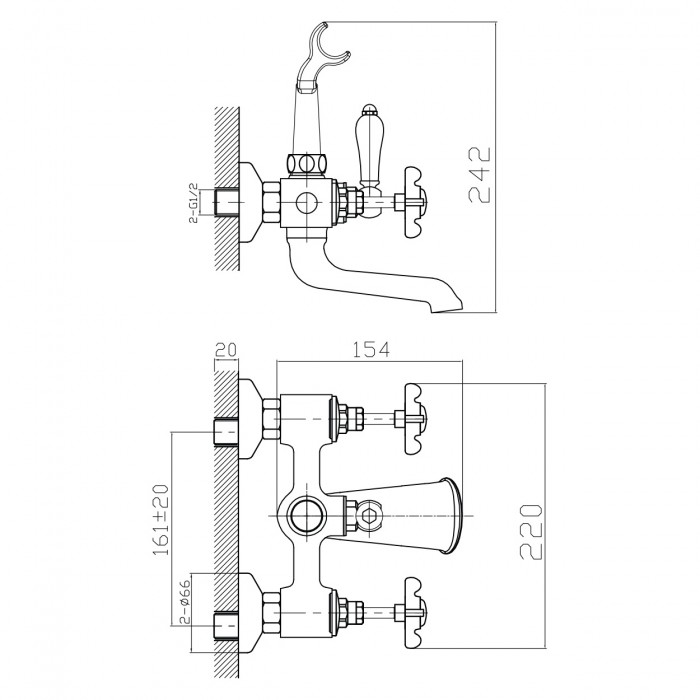 Смеситель для ванны двухвентильный Imprese CUTHNA zlato, золото, (10280 zlato-n)
