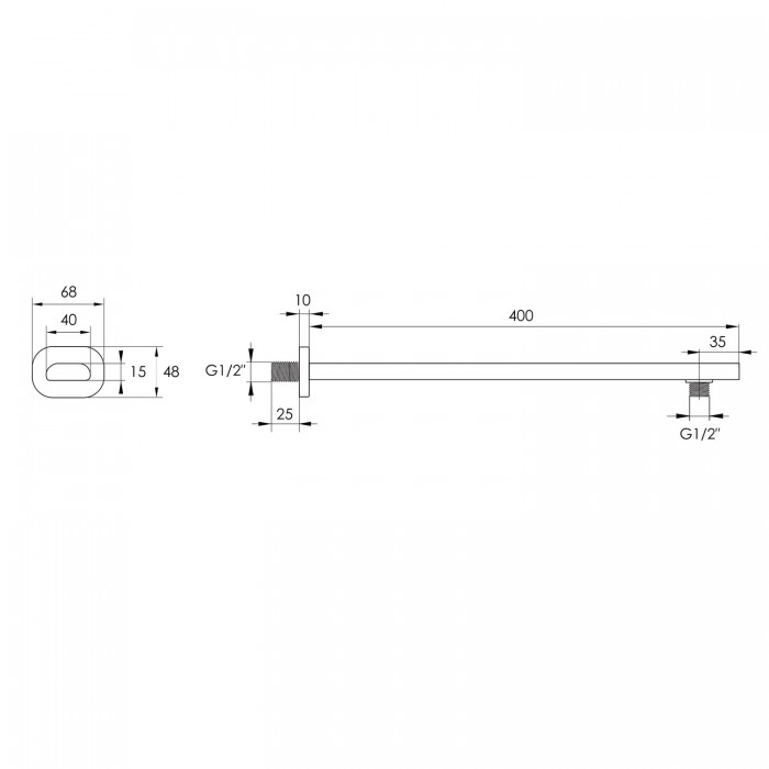 Держатель верхнего душа для настенного монтажа, длина 400 мм, цвет хром, материал латунь.