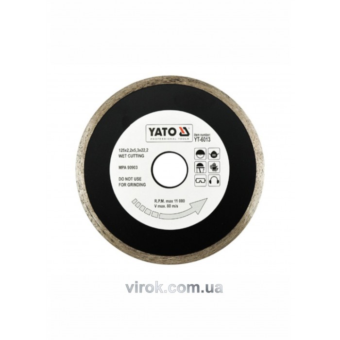 Диск отрезной алмазный для мокрой резки YATO 125 x 2.2 x 5.3 x 22.2 мм