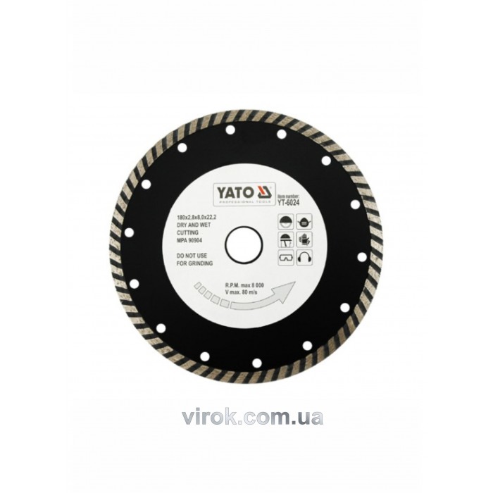 Диск отрезной алмазный YATO "TURBO" 180 х 2.8 х 8 х 22.2 мм