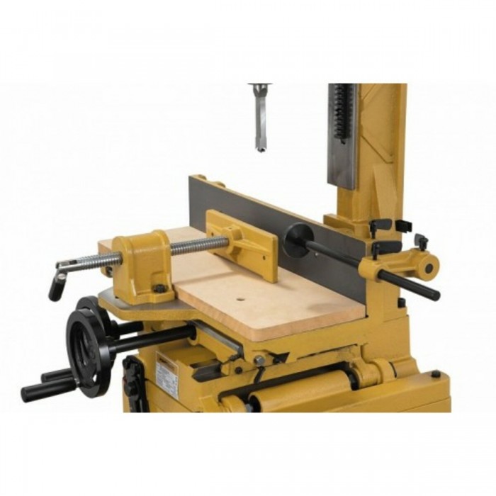 Робочі параметри Потужність (вихідна) потужність двигуна, кВт 1,3 (0,75) Напруга, В 230 Довжина, мм 540 Ширина, мм 550 Частота обертання шпинделя на холостому ході, об/хв 1400 Висота, мм 1880 рік Максимальний діаметр затиску свердлильного патрона 13 мм Кут нахилу столу 0-35° маса, кг 125 Максимальний розмір різця (тверді/м'які породи) 19/25 мм Довжина в упаковці, см 98 Хід різця 200 мм Ширина в упаковці, см 59 Максимальна висота заготовки від столу, мм 195 Висота в упаковці, см 59 Хід столу по осях (подовжній/поперечний) 400/100 мм Маса в упаковці, кг 125 Розміри робочого столу (ДхШ), мм 520 x 180 Розміри упору заготовки (ДхВ) 520 х 115 мм Максимальна відстань від упору до центру різця 100 мм Опис особливості: Рейковий механізм подачі з газовим упором Регульований упор глибини довбання Поздовжній упор заготівлі Гвинтовий притиск заготовки до поздовжнього упору Регульований торцевий упор заготовки Координатний робочий стіл із маховиками подачі по осях Регульовані обмежувачі ходу осями Робочий стіл із чавунного лиття з дерев'яною накладкою Можливість повороту колони на 180° для роботи з високими заготовками над підлогою Професійний долбяжно-пазувальний верстат Powermatic 719T, оснащений координатним столом та механізмом його нахилу. Він потрібний для стикування деталей під кутами, відмінними від 90° (застосовується при створенні складних конструкцій, на кшталт багатогранних віконних рам). Регулювання нахилу провадиться за транспортирною шкалою з передньої сторони верстата, фіксація наскрізним гвинтовим затиском відразу з двох сторін основи. Стіл із подачею по двох осях обладнаний гвинтовим притиском заготовки, на ньому обробляють деталі висотою до 195 мм. Можливість робити поперечні та поздовжні пази за одну установку заготовки забезпечує високу точність та простоту експлуатації. Передбачено регульований торцевий упор, зручний для виконання операцій, що багаторазово повторюються, з однаковими виробами. Така операція, як врізання замків у готові вироби (дверне полотно, віконна обкладинка тощо), теж може виконуватися, незважаючи на їх великий габарит. Для цього свердлильну частину повертають навколо колони на 180° і закріплюють у цьому положенні. Деталь мають на підлозі з використанням підкладок необхідної товщини. Верстат відрізняється вдалим поєднанням універсальності та точності при порівняно компактних розмірах.