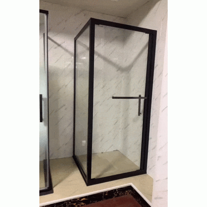 Душевая кабина Tinto: - размер 90*90*195 см; - без поддона; - вес кабины составляет (брутто) 65 кг; - нетто 63 кг; - алюминиевый профиль, черного матового цвета; - закаленное стекло 6 мм; - черные ручки из нержавеющей с...
