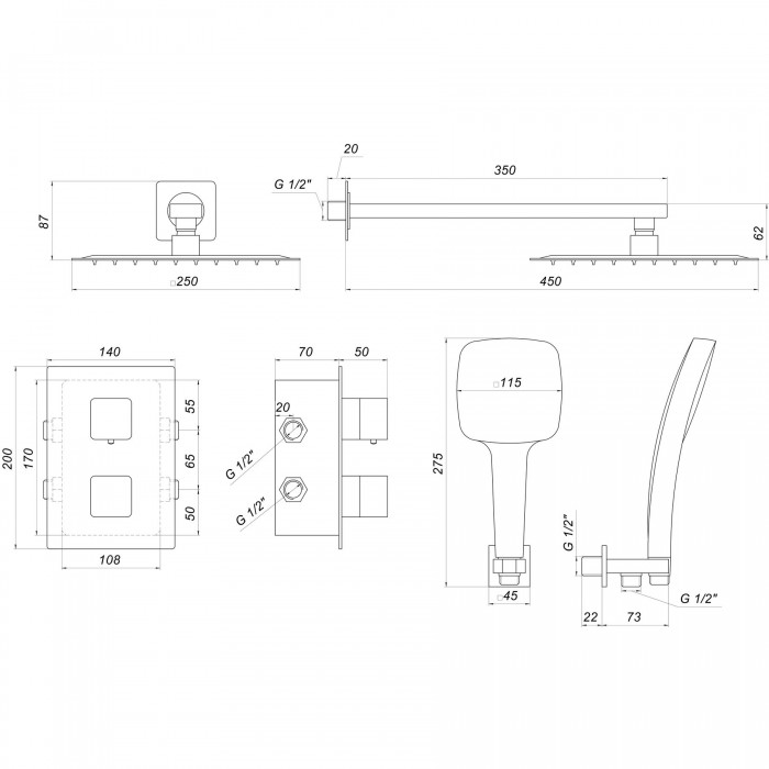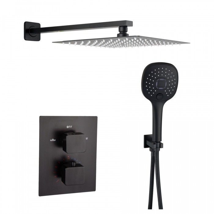 Душевая система Globus Lux GLM-405-BB-TT-SMART box Termostatic КУБ, черная матовая