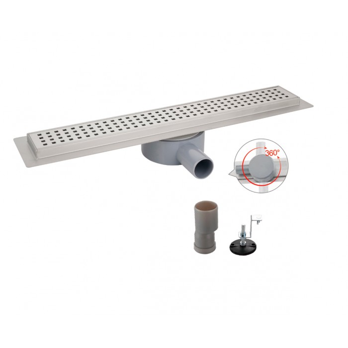 Водоотводящий желоб, решетка, гидроизоляционная лента соответствующая желобу, комбинированный гидрозатвор SMART, опорные ноги, монтажный крючок
