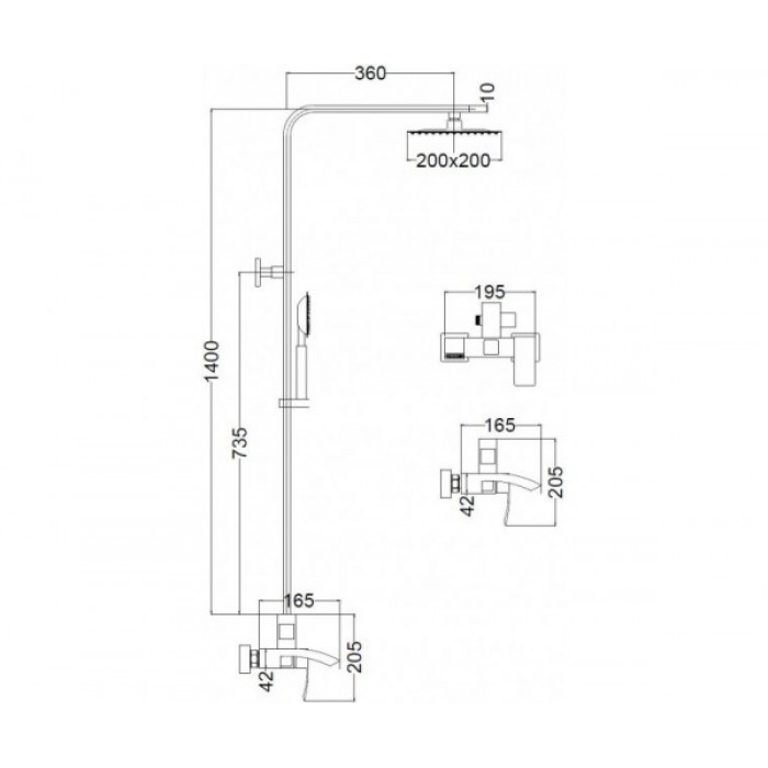 Представлений тут душовий набір Toscana MXIN0455 від Mixxen оснащений прямокутною головкою для душа з металевим плетеним шлангом довжиною 150 см, квадратним верхнім душем розміром 20 х 20 см з бортами довжиною 36 см, душовою штангою висотою 140 см з вбудованим тримачем для ручного душу та одним важелем змішувач для ванни. У комплекті є шлангове зєднання з комутаційним клапаном, інтегрованим зі штоком.
