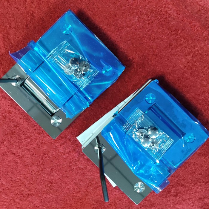 Упаковка 1/1. Распашная реверсная стеклянная дверь, реверсная фиксированная панель, двойная двусторонняя ручка, опорная планка и настенные хомуты, комплект крепежных деталей, набор уплотнителей, заглушки.