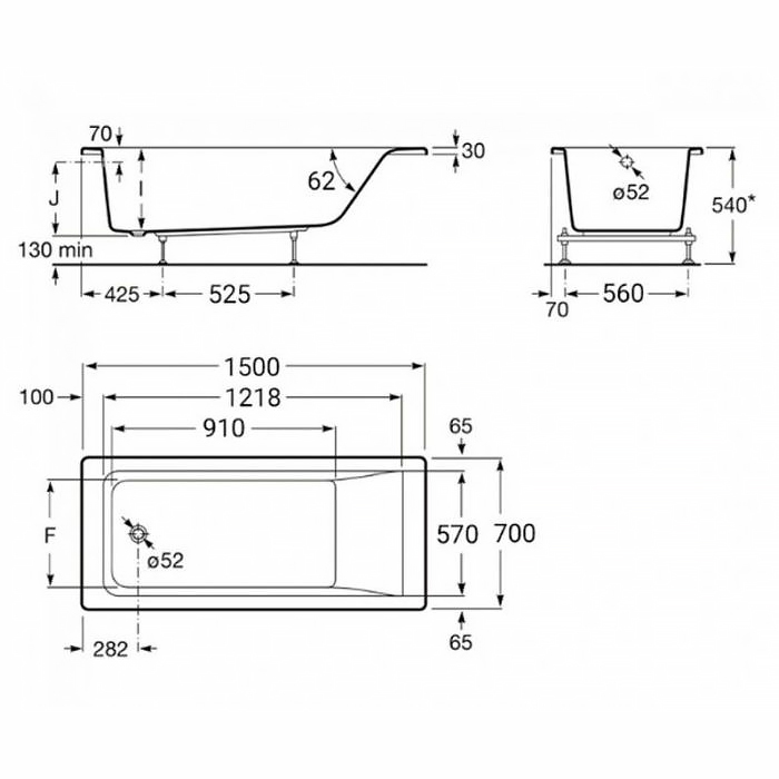 Ванна прямоугольная Roca EASY 150*70см с ножками (A248196000)
