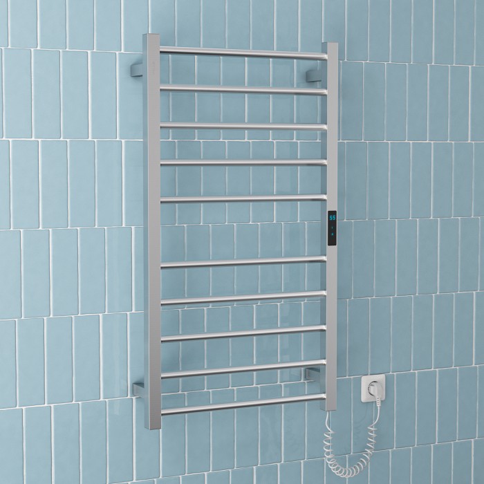 Электросушилка VOLLE CAMPO L, 120W, 500*900мм, сталь 304, 10 перемычек (5-5) круг, стойки квадрат, таймер, термостат 70°С, cepillado cromo, (9210.000113)