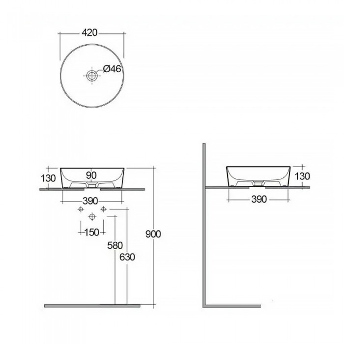 Раковина на столешницу RAK Ceramics FEECT4200514A FEELING, (Matt Cappuccino, d 42см)