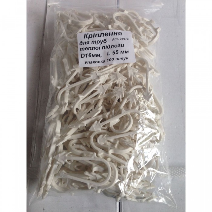 Гарпун-скоба для крепления трубы теплого пола Ø16, длина 55мм, белая (упаковка 100шт)