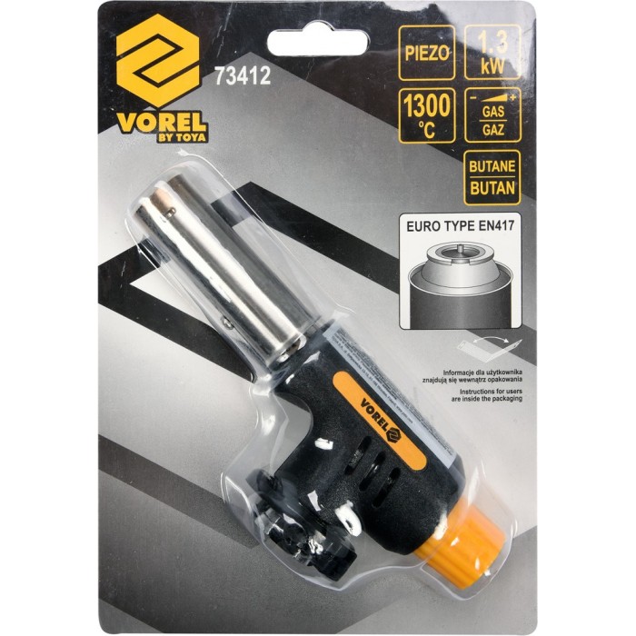 Газовая горелка VOREL 73412 (с пьезоподжигом, тип соединения EN417, макс. t=1300°C, P= 1,3 кВт)