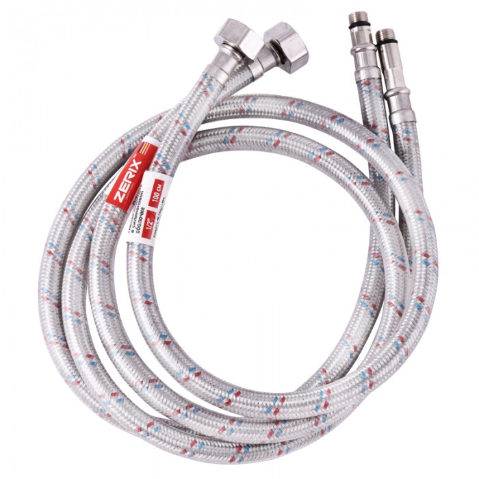 Гибкая подводка (шланги в силиконовой оболочке, гайки нержавейка) M10-100 см ZERIX (ZX3032)...