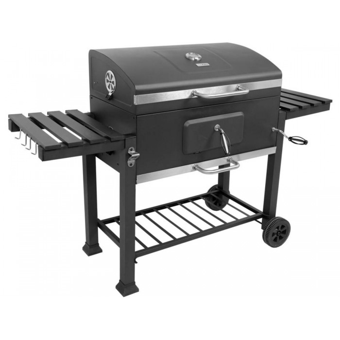 Гриль прямоугольный угольный LUND 99917, (решетка 78х43 см, на 4 ножках/ 2 колеса с 2 полками, 159х68х108 см)