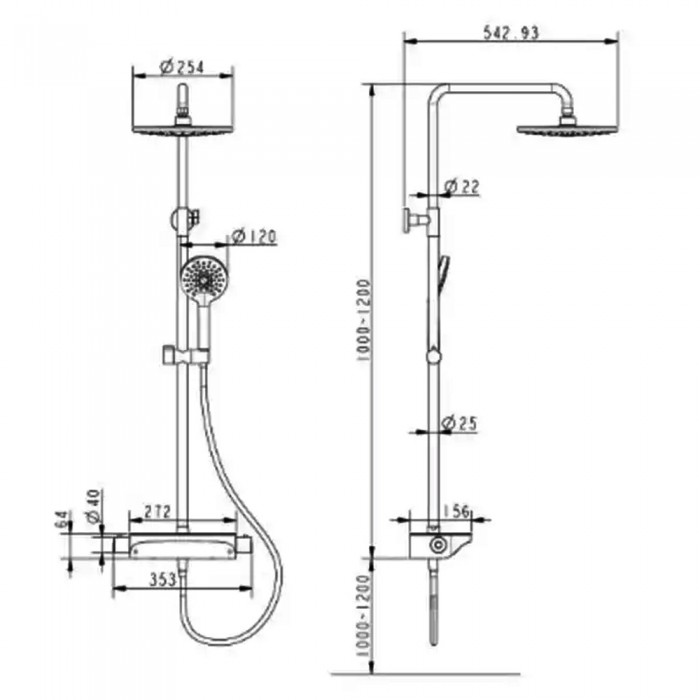 ручной душ, верхний душ, держатель, штанга, смеситель для раковины, термостат, душевой шланг