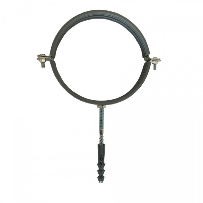 Металический хомут, комплект - CR 4" (105-112мм) - это крепёжное изделие, состоящее из двух половинок, со стяжными болтами, а также оснащенное вибро - и звукоизолирующим профилем и приваренной соединительной гайкой. Также хомуты укомплектованы шпилькой-саморезом и пластиковым дюбелем, позволяющими произвести монтаж трубы к неподвижной горизонтальной или вертикальной поверхности.