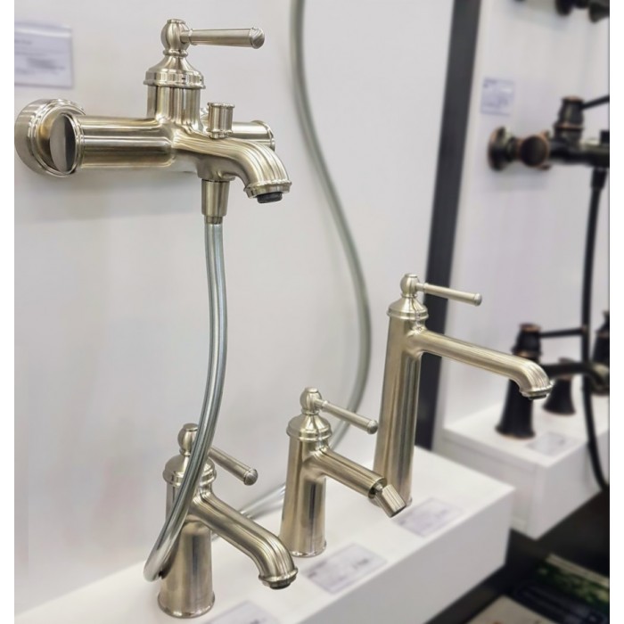 Смеситель для раковины, настольный монтаж, однорычажный, цвет - brush nickel. Два аэратора: Neoprl 7L/M и в комплекте 23L/M. Гибкие шланги подключения воды 600 мм Tucai. 35 мм Sedal картридж с ограничителем температуры. ...