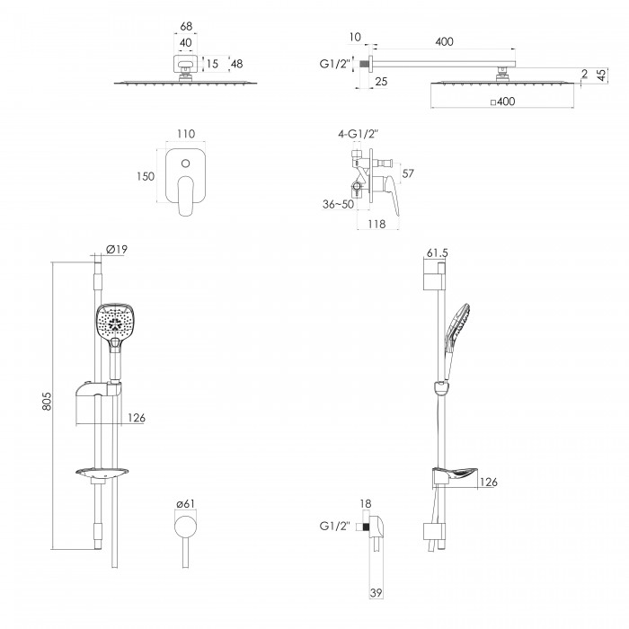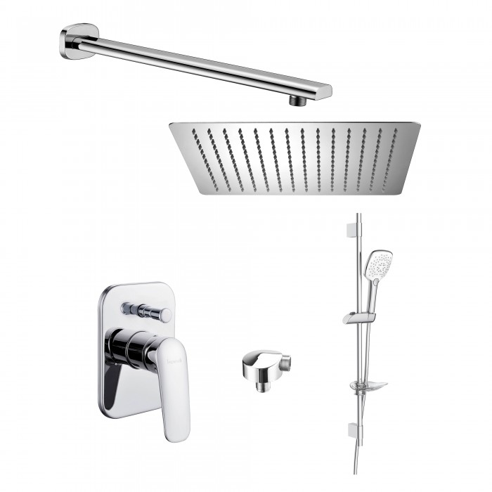 Система душевая скрытого монтажа Imprese SET20220102 (смеситель PRAHA new, верхний душ 400х400мм, штанга (SQ400SS2+8001073+SH01-400B+VR-10030(Z)+HC01)), хром