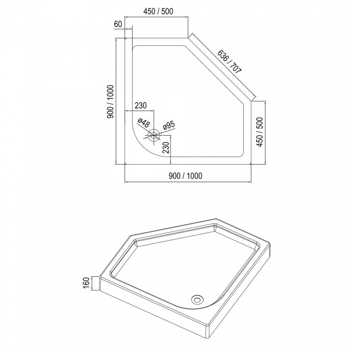 Душевой поддон EGER IRIS 90*90*16см пятиугольный, с сифоном (599-142/2)