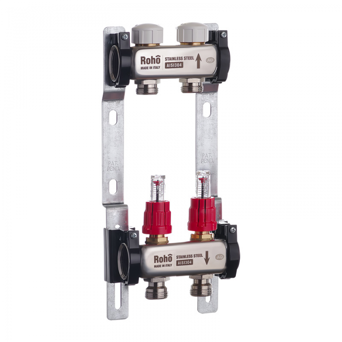 Коллектор с расходомером и термостатическими клапанами Roho R804-02 - 1"х 2 вых. (RO0034)