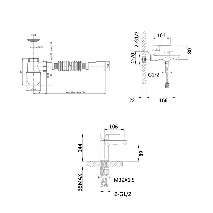 0,97 - смеситель для раковины; 1,535 - смеситель для ванны; 0,23 - сифон
