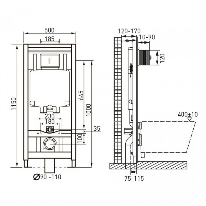 Инсталляция Volle MASTER 141919 + Унитаз Kolo IDOL сиденье полипропилен + белая клавиша (M1310000U+141919)...