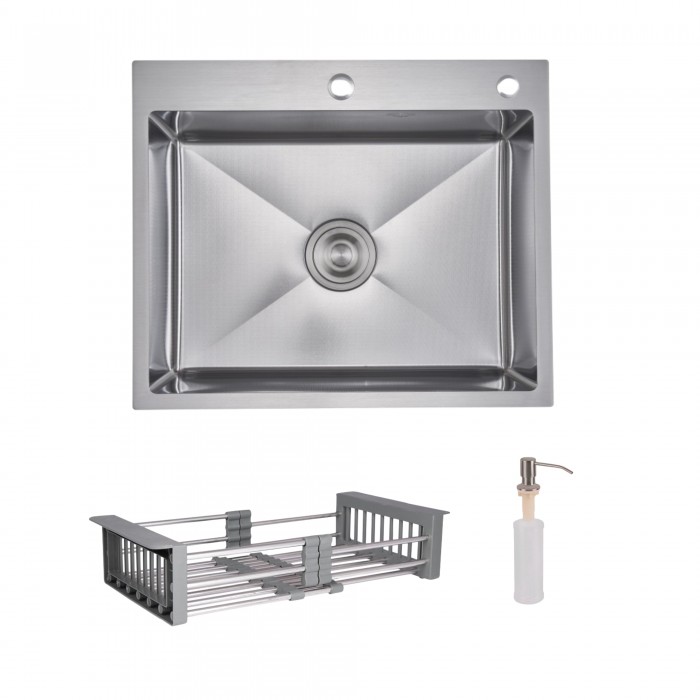 Большая встроенная мойка из нержавеющей стали с декоративной поверхностью Honeycomb. В комплекте с дозатором и корзиной Lidz K01G – все необходимое для комфортного использования....