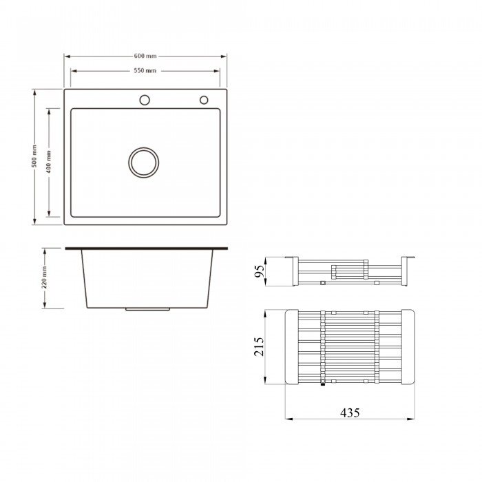 Комплект Lidz Handmade H6050H Мойка для кухни интегрированная Decor Honeycomb в комплекте с дозатором + Lidz K01G Корзина для кухонной мойки