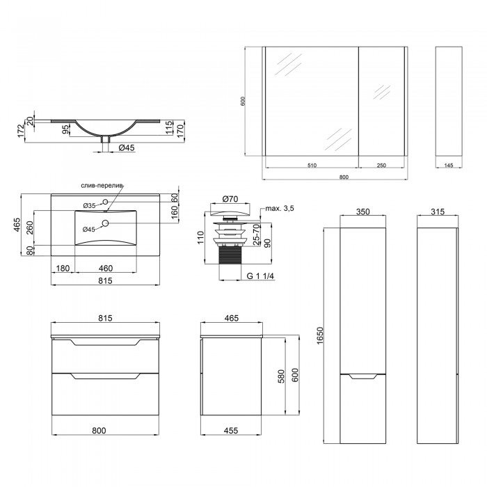 Комплект мебели для ванной Qtap Scorpio тумба с раковиной + зеркальный шкаф + пенал QT044SK42991