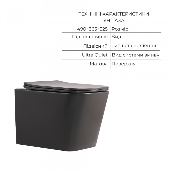 Комплект Qtap Tern Anthracite 3 в 1: унитаз подвесной Ultra Quiet + биде подвесное + раковина накладная QTTERAN49161