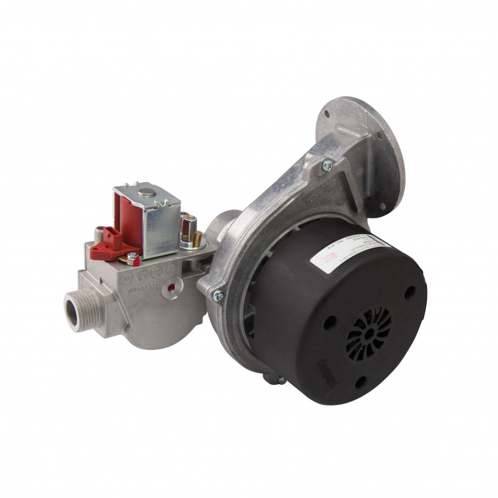 Газовоздушный блок включает в себя газовый клапан и вентилятор. Его задача - подготовка газовоздушной смеси в заданной пропорции и подача ее в камеру сгорания котла