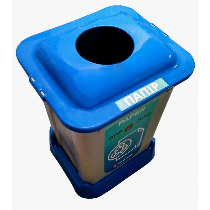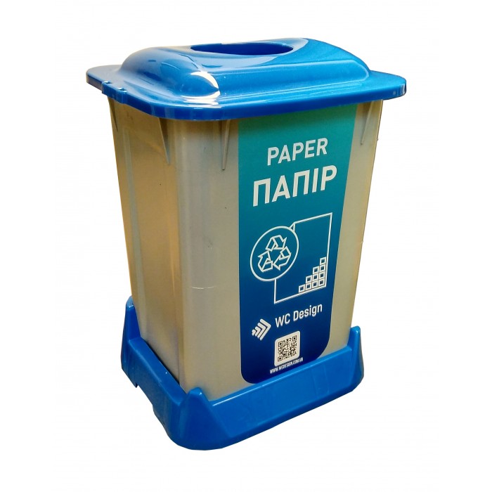Тип исполнения - контейнер для сортировки мусора (бумага) с крышкой на зажимах и подставкой.