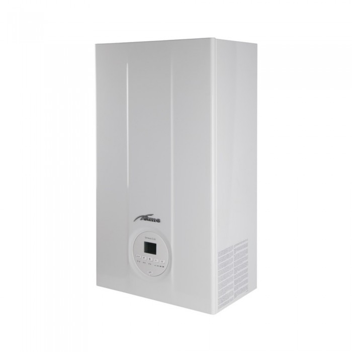Компактное настенное устройство, обеспечивающее нагрев теплоносителя для отопительной и ГВС систем — котел газовый Sime Brava Slim 25 BF 24 кВт двухконтурный. Ретроактивный контроль горения происходит с помощью электронного газового клапана. Изделие оборудовано двумя теплообменниками. Предусмотрена возможность подключения температурного датчика наружного воздуха (надо заказывать отдельно). На фронтальной поверхности корпуса котла расположена удобная панель управления с дисплеем.