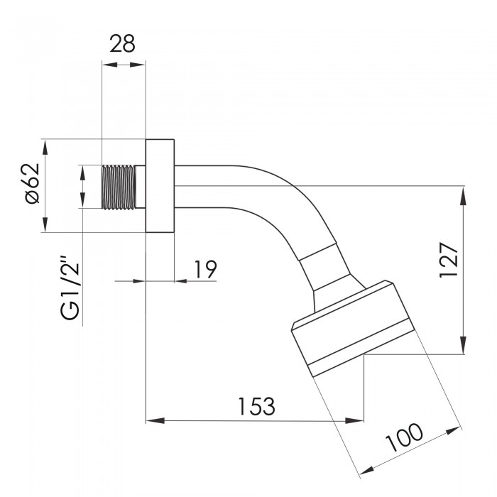 Длина лейки верхнего душа, мм
