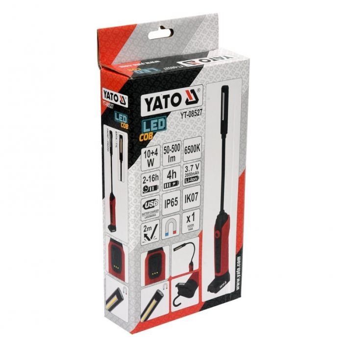 Лампа світлодіодна для майстерні YATO; 3.7 В акумулят. Li-Ion, 2 режими, зарядний USB пристрій