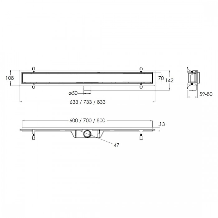 Линейный трап 700мм, система сухой затвор, с решеткой "волна"