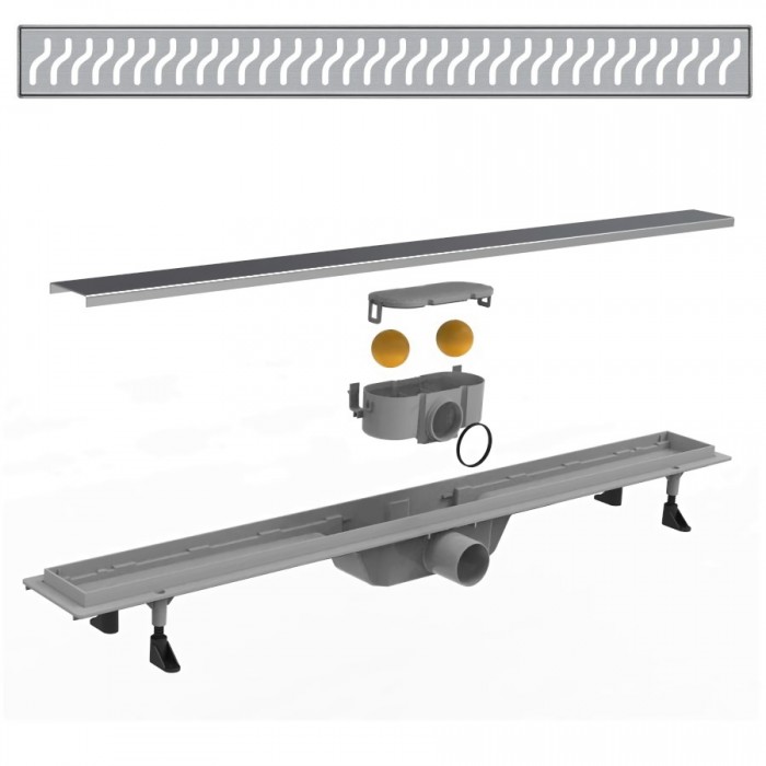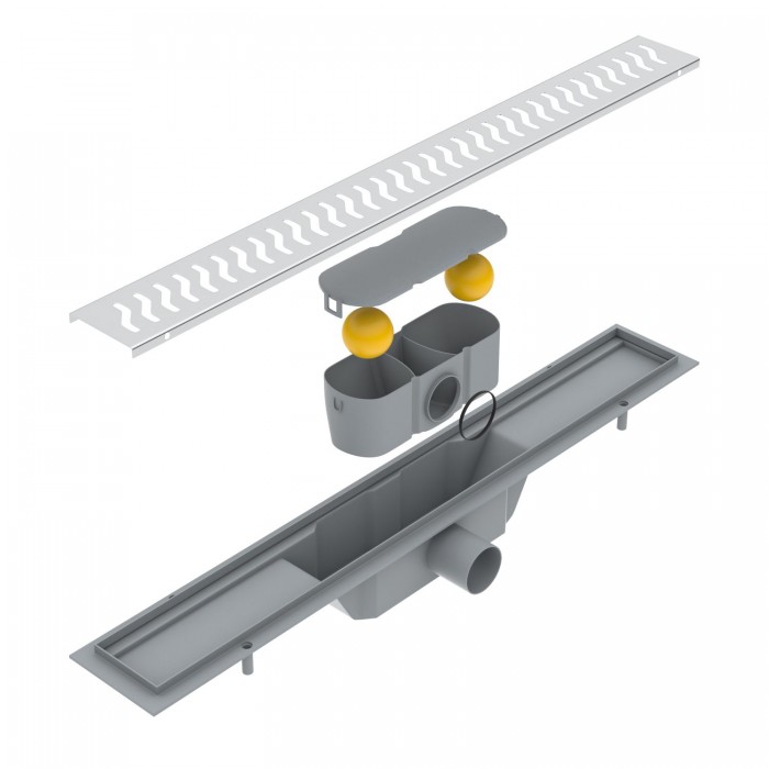 Линейный трап 700мм, система сухой затвор, с решеткой "волна"...