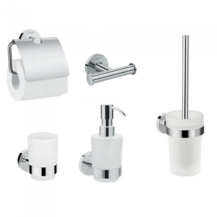 Набор аксессуаров Hansgrohe LOGIS 41723111 (крючок двойной, диспенсер, держатель туалетной бумаги, стакан, туалетная щётка)