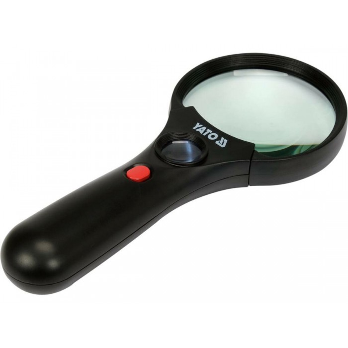Лупа ручна в ABS-пластиковій оправі YATO YT-73845, (2 лінзи 3х/45х кратні, 192х 82х 28мм з підсвітленням )