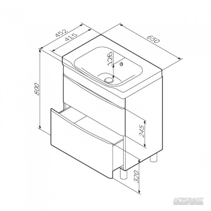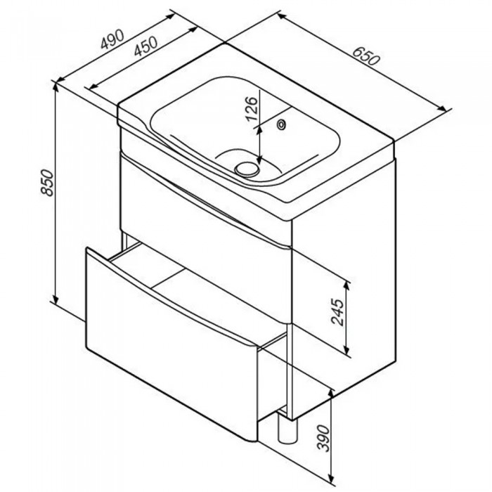 Тумба с раковиной на пол 65 см AM.PM M80-FSX0652-WC0652-38 LIKE, белый глянец