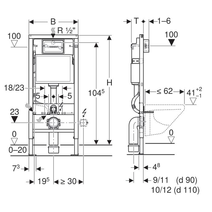 Монтажный элемент для подвесного унитаза Geberit DUOFIX Basic 112 см, со смывным бачком скрытого монтажа Delta 12 см, без клавиши, с траверсой (458.103.00.1)