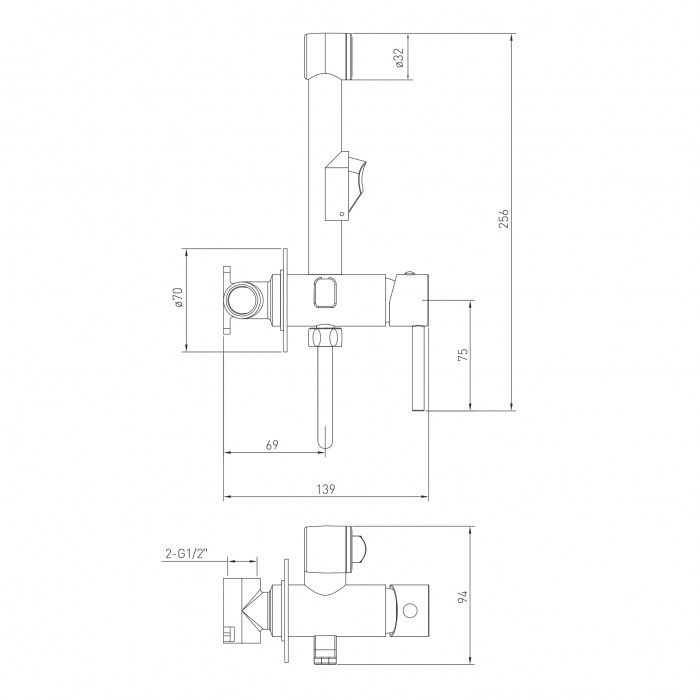 смеситель скрытого монтажа, гигиенический гарнитур