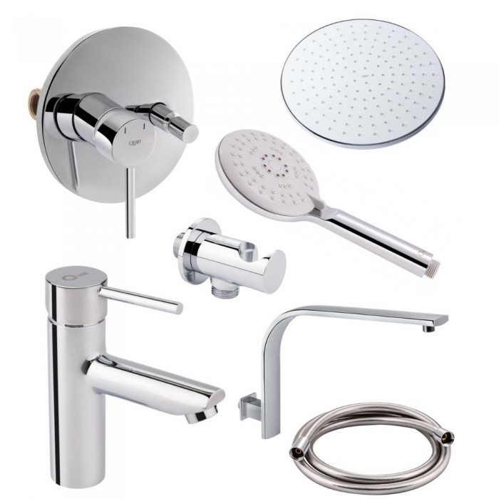 Набор смесителей Qtap 7 в 1 Spring со встроенным комплектом для душа на 2 потребителя (QTSPRCRM001 + QTSPRCRM0102) хром