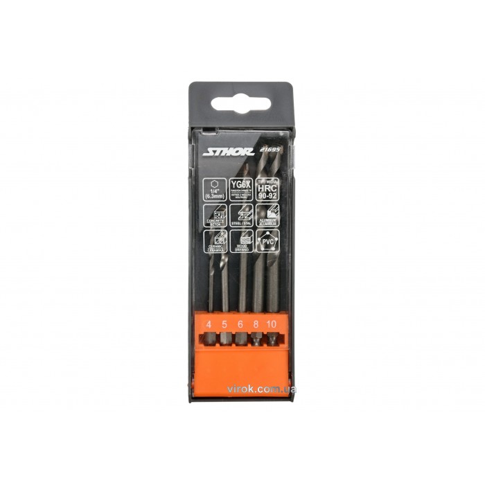 Набор сверл универсальных STHOR с шестигранным хвостовиком 1/4" 4-10 мм YG6X 5 шт...
