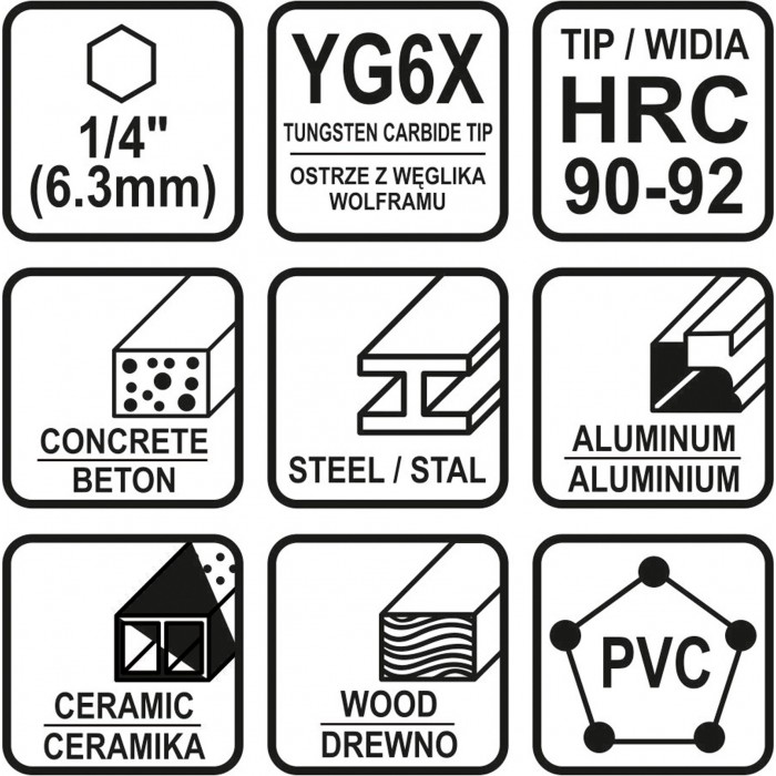 Набор сверл универсальных STHOR с шестигранным хвостовиком 1/4" 4-10 мм YG6X 5 шт